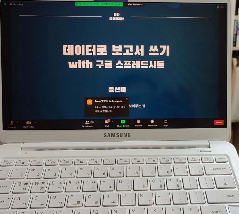 두번째 강연 선미님의 데이터로 보고서 쓰기였다. 어떻게 해야 상대가 원하는 내용만 전달하면 잘 쓴 보고서가 될 수 있는지 배웠다.